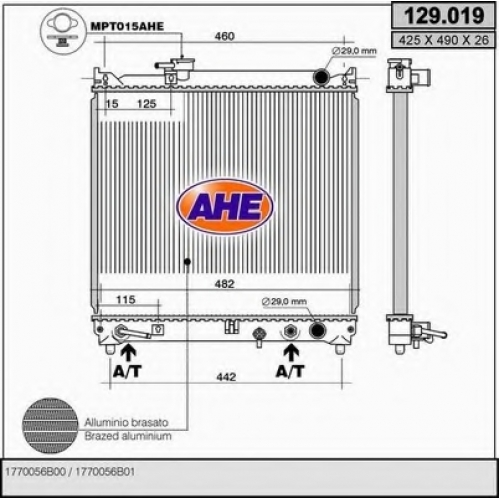 129.019 AHE Радиатор, охлаждение двигателя