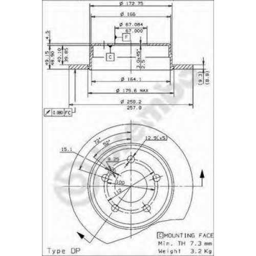 | Минимальная толщина [мм] | 7,3 |