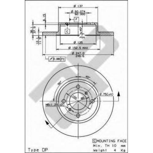 | Толщина тормозного диска (мм) | 12 |