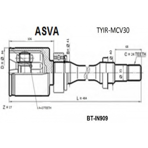 TYIR-MCV30 ASVA Шарнирный комплект, приводной вал