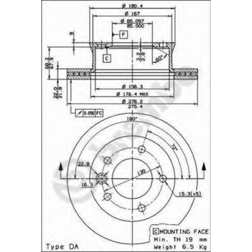 | Толщина тормозного диска (мм) | 22 |