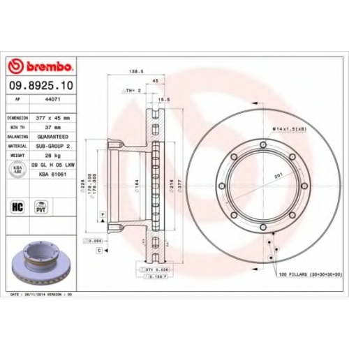 09.8925.10 BREMBO Тормозной диск
