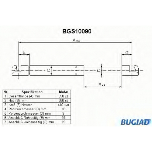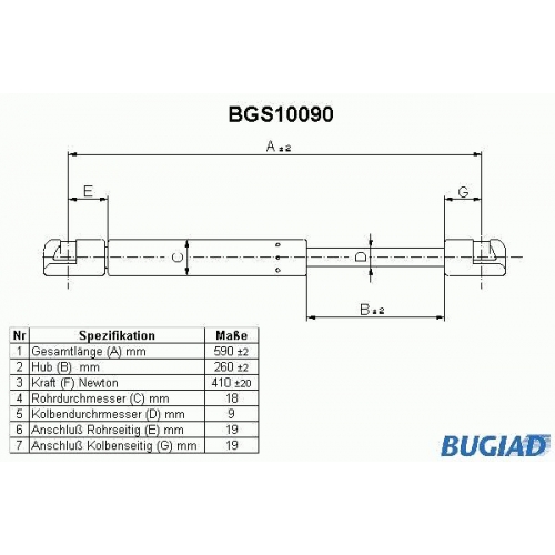 BGS10090 BUGIAD Газовая пружина, крышка багажник