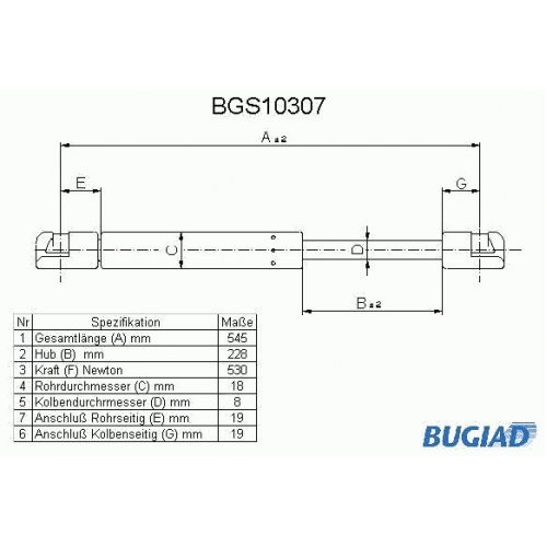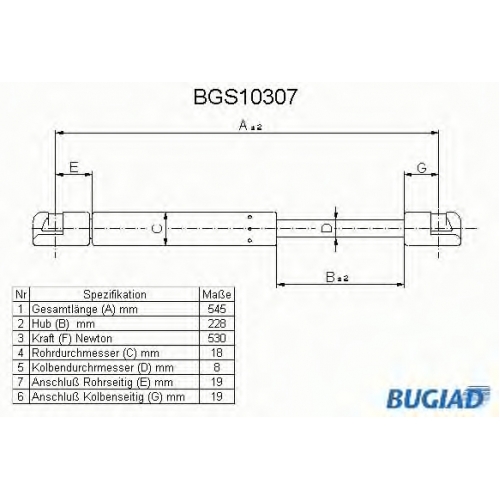 BGS10307 BUGIAD Газовая пружина, крышка багажник