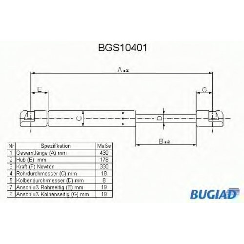 BGS10401 BUGIAD Газовая пружина, крышка багажник