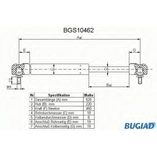 BGS10462 BUGIAD Газовая пружина, крышка багажник