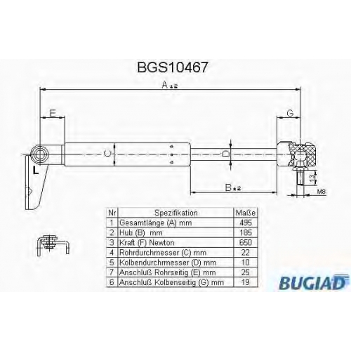BGS10467 BUGIAD Газовая пружина, крышка багажник