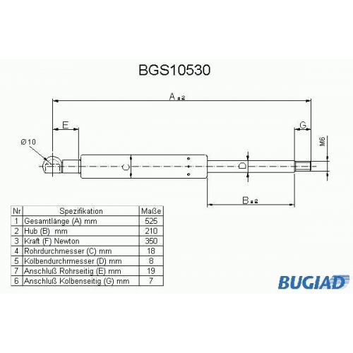 BGS10530 BUGIAD Газовая пружина, крышка багажник