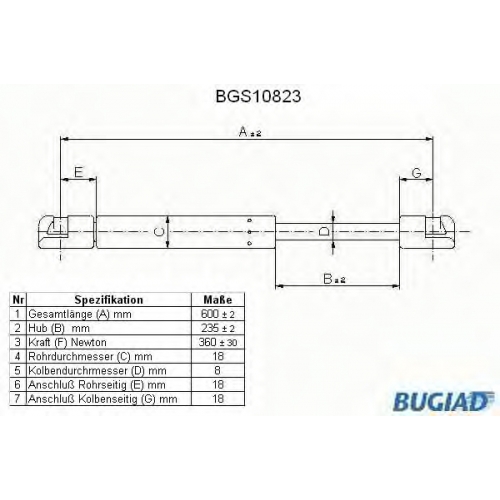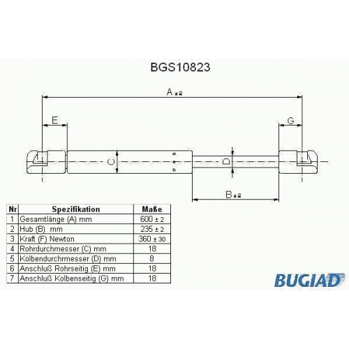 BGS10823 BUGIAD Газовая пружина, крышка багажник