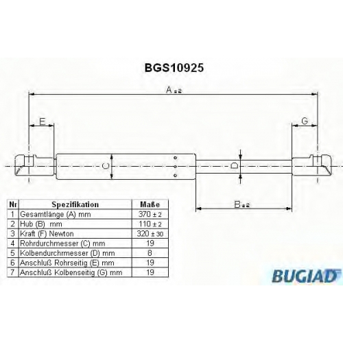 BGS10925 BUGIAD Газовая пружина, крышка багажник