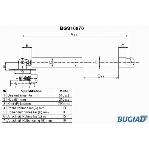 BGS10970 BUGIAD Газовая пружина, капот