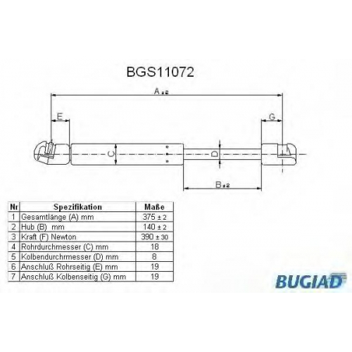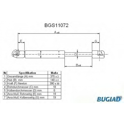 BGS11072 BUGIAD Газовая пружина, крышка багажник