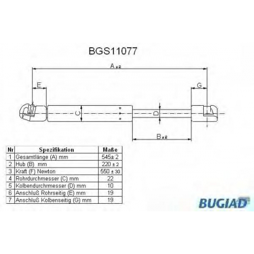 BGS11077 BUGIAD Газовая пружина, крышка багажник