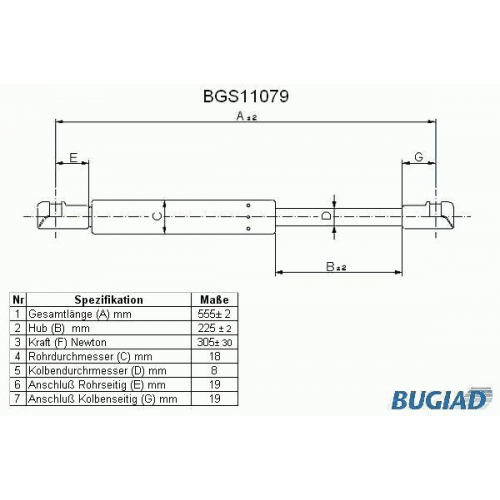 BGS11079 BUGIAD Газовая пружина, крышка багажник