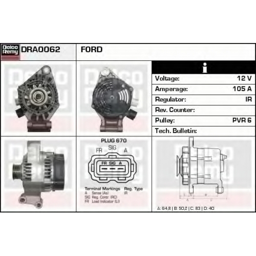 DRA0062 DELCO REMY Генератор