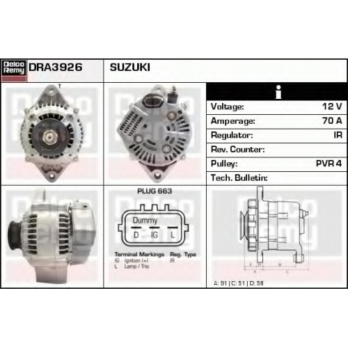 DRA3926 DELCO REMY Генератор