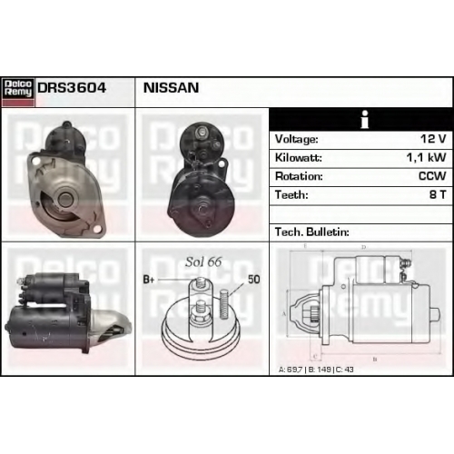 DRS3604 DELCO REMY Стартер