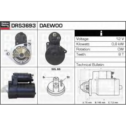 DRS3693 DELCO REMY Стартер