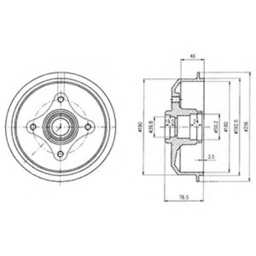 Общ. высота торм. барабана [мм] 76,5