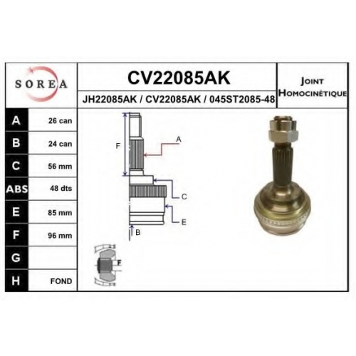 CV22085AK EAI Шарнирный комплект, приводной вал