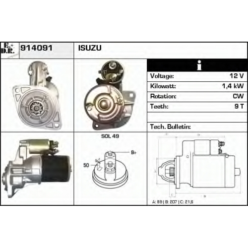 | Мощность стартера [кВт] | 1,4 |