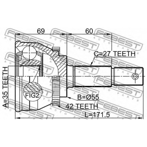 0210-N16MTA42 FEBEST Шарнир, приводной вал