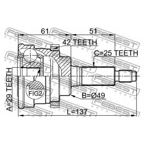0710-029A42 FEBEST Шарнир, приводной вал