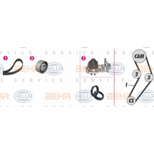 8MP 376 800-851 HELLA Водяной насос + комплект зубчатого ремня