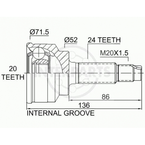 OJ-0454 InterParts Шарнирный комплект, приводной вал