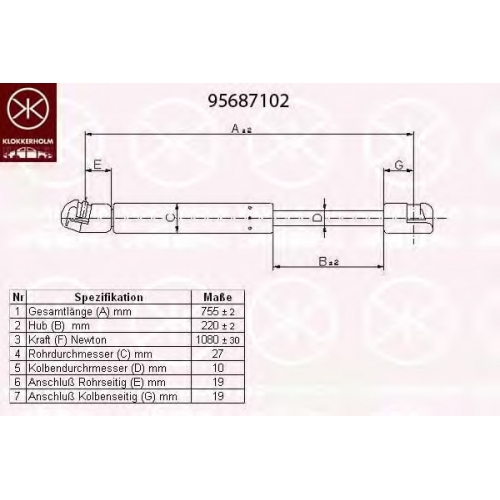 95687102 KLOKKERHOLM Газовая пружина, крышка багажник