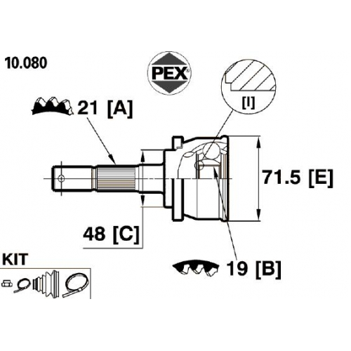 10.080 PEX Шарнир, приводной вал