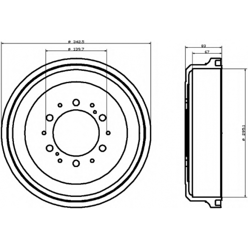 | Общ. высота торм. барабана [мм] | 83 |